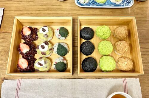 こんにちは♪ 先日のことですが、春分の日に子供と一緒に「ぼたもち」を作りました。 ぼたもちやおはぎって、1つ食べただけでもお腹にズッシリくるし、全部あんこだと飽きるので、3口くらいで食べられるサイズにして6種類作ってみました。 あと、おやつにして…
